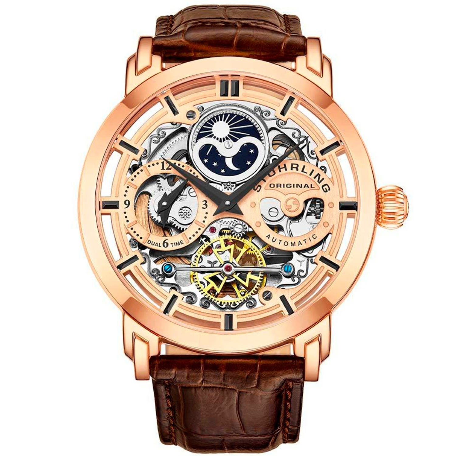 Hjem » Stührling Skeleton Kronograf Læderrem | Automatisk urværk 46mm